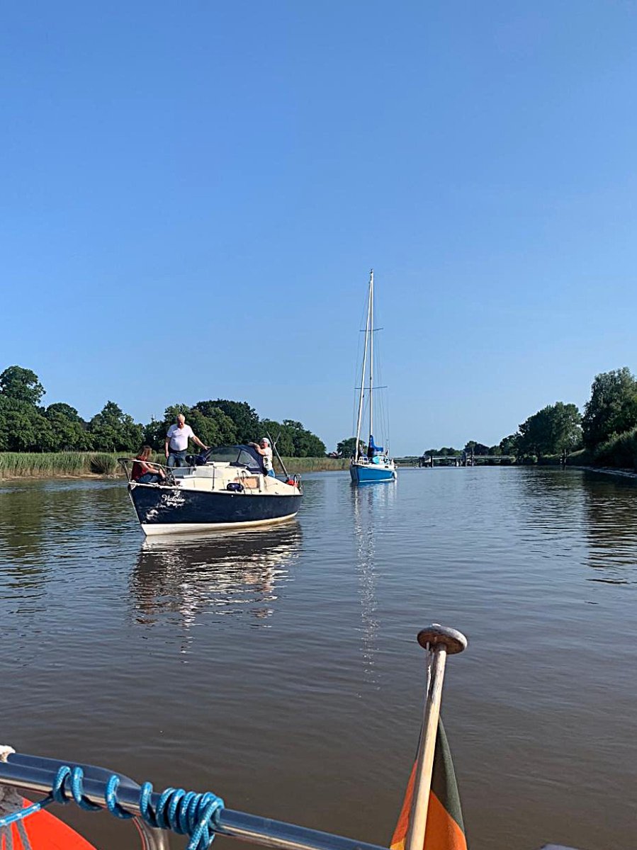 Das diesjährige Abmotoren fand am 6. Oktober in Verbindung mit einer „Mocambo„-Fahrt der Arbeitsgemeinschaft Osteland statt. 6 Boote begleiteten die „Mocambo“ von Oberdorf zur Oste-Mündung und danach zum „Seefahrer„.